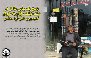 “چند روز پیش از کمیسیون محترم اصل نود مجلس شواری اسلامی با بنده تماس گرفتند و دو تا سوال از بنده کردن که جا داره یکیشو که مربوط به عینک سازان بهائی ایران است و برای آنکمیسیون محترم شبه ایجاد کرده بود عرض کنم.