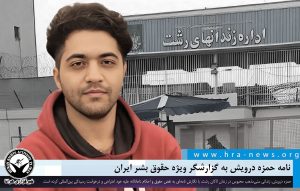 اینجانب حمزه درویش، زندانی سیاسی زندان مرکزی رشت لاکان هستم، که در شعبه ۲۸ دادگاه انقلاب تهران به ریاست قاضی محمد مقیسه در مدت پنج دقیقه دادگاهی و به ۱۵ سال حبس محکوم شده ام. اکنون ۹ سال است که در زندان بسر میبرم. در اردیبهشت ماه سال ۱۳۹۹، کارشناسان اداره اطلاعات رشت من را به زور از از زندان رجایی شهر کرج به زندان مرکزی رشت انتقال دادند و در بدو ورود به زندان رشت، شش ماه من را در انفرادی نگه داشته و بعد من را به سالن جرائم خشن انتقال دادند.