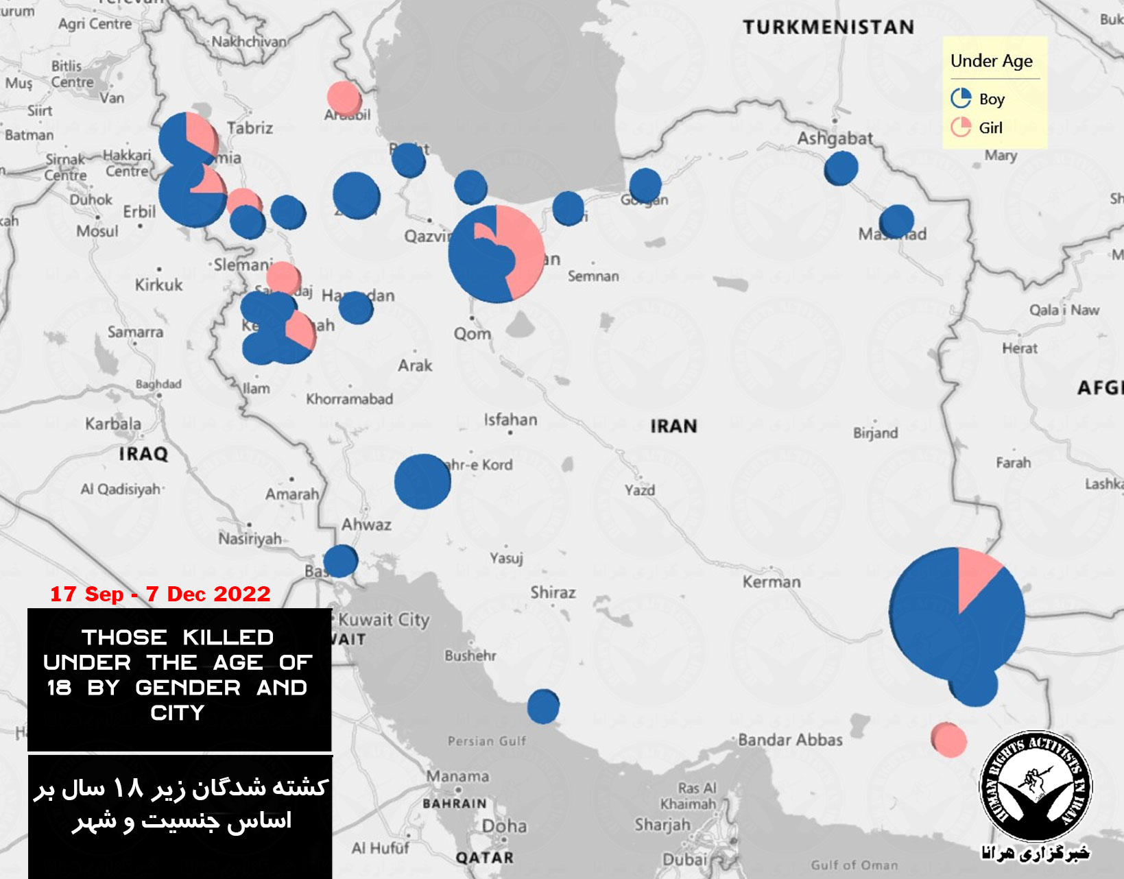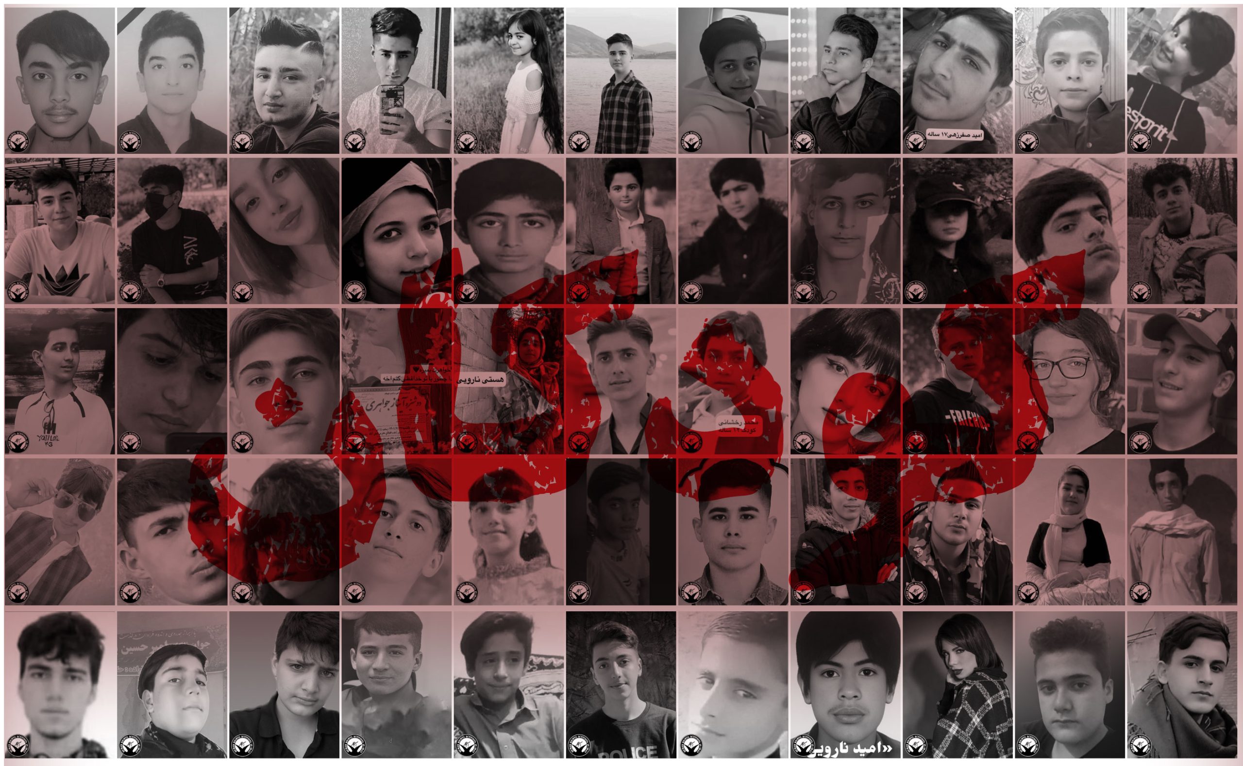 از جمله اسامی گردآوری شده افرادی که کمتر از ۱۸ سال سن داشته اند می توان به ۶۸ مورد زیر اشاره کرد: زکریا خیال (سلیمانی) (۱۶ ساله)، عبدالله محمودپور (۱۶ ساله)، امین معروفی (معرفت) (۱۶ ساله)، امیرعلی (انوشیروان) فولادی (۱۶ ساله)، محمد زمانی (۱۶ ساله)، سید مهدی موسوی نیکو (۱۶ ساله)، سیاوش محمودی (۱۶ ساله)، محمدامین گمشادزهی (۱۷ ساله)، سامر هاشمزهی (۱۶ ساله)، امیرحسین بساطی (۱۵ ساله)، امید سارانی (۱۳ ساله)، محمدرضا سروری (۱۴ ساله)، علی مظفری سالانقوچ (۱۷ ساله)، محمداقبال نایبزهی شهنوازی (۱۶ ساله)، سدیس کشانی (۱۴ ساله)، جواد پوشه (۱۱ ساله)، جابر شیروزهی (۱۲ ساله)، امیرمهدی فرخی پور (۱۷ ساله)، احسان علیبازی (۱۶ ساله)، پویا (علی) احمدپور پسیخانی (۱۷ ساله)، امید صفرزهی (۱۷ ساله)، نیما شفق دوست (۱۶ ساله)، محمد رخشانی (۱۲ ساله)، یاسر شاهوزهی (۱۶ ساله)، آرمین صیادی (۱۷ ساله)، علی براهویی (۱۴ ساله)، ابوالفضل آدینه زاده (۱۷ ساله)، دانیال شه بخش (۱۱ ساله)، مرتضی (فامیلی نامشخص) (۱۴ ساله)، ابوالفضل باهو (۱۷ ساله)، (اسم کوچک نامشخص) کبدانی (حدودا ۱۲ ساله)، محمد فرحانی (حدود ۱۷ ساله)، عادل کوچکزایی (بریچی) (۱۵ ساله)، امید نارویی (۱۵ ساله)، کومار درافتاده (۱۶ ساله)، مبین میرکازهی (۱۴ ساله)، یاسر بهادرزهی (۱۷ ساله)، احمدرضا قلجی (۱۷ ساله)، مهدی حضرتی (۱۷ ساله)، علی آبیار (۱۷ ساله)، میلاد سعیدی (۱۶ ساله)، دانیال پابندی (۱۷ ساله)، کیان پیرفلک (۱۰ ساله)، آرتین رحمانی پیانی (۱۳ ساله)، سپهر مقصودی (۱۴ ساله)، عرشیا (ارشیا) سلطانیه ( ۱۲ ساله)، بهاالدین ویسی (۱۶ ساله)، کاروان قادر شکری (۱۶ ساله)، مهدی کابلی کفشگیری (۱۵ ساله)، محمدحسین کمندلو (۱۷ ساله)، رضا کاظمی (۱۶ ساله)، امین خانلو (۱۶ سال)، ابوالفضل بدیع (حدودا ۱۶ ساله)، نیکا شاکرمی (۱۶ ساله)، سارینا اسماعیل زاده (۱۶ ساله)، هستی نارویی (۶ ساله)، (نام کوچک نامشخص) میرشکار (۲ ساله)، ستاره تاجیک (۱۷ ساله)، حدیث عبدی (۱۶ ساله)، اسرا پناهی خانقاه (۱۵ ساله)، آرنیکا قائم مقامی (۱۷ ساله)، صدف موحدی (۱۷ ساله)، سارینا ساعدی (۱۶ ساله)، آیناز جواهری (۱۵ ساله)، پارمیس همنوا (حدودا ۱۴ ساله)، هلن احمدی (۷ ساله)، دیانا محمودی (حدودا ۸ ساله)، آرام مجد (۱۷ ساله) و امیرمحمد (ایلیاد) رحمانی پور (۱۶ ساله)،