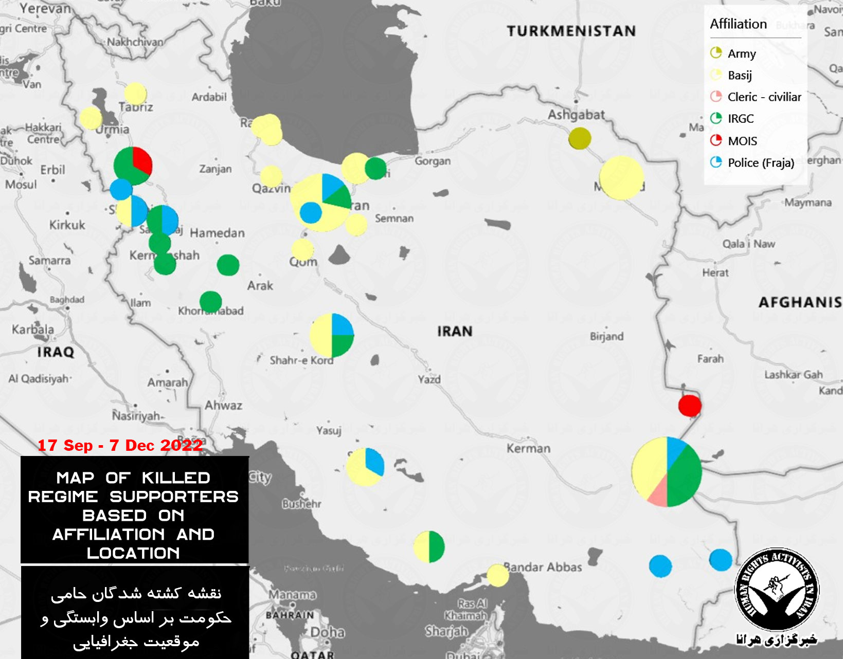 برای درک بهتر از پراکندگی و وابستگی نیروهای کشته شده وابسته به حکومت به نقشه زیر بنگرید: