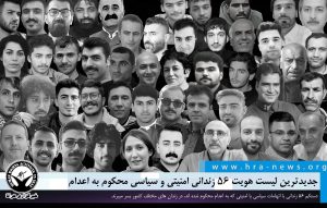 به گزارش خبرگزاری هرانا، ارگان خبری مجموعه فعالان حقوق بشر در ایران، دستکم ۵۶ زندانی محکوم به اعدام از بابت اتهامات سیاسی یا امنیتی در زندان های سراسر کشور محبوس هستند.