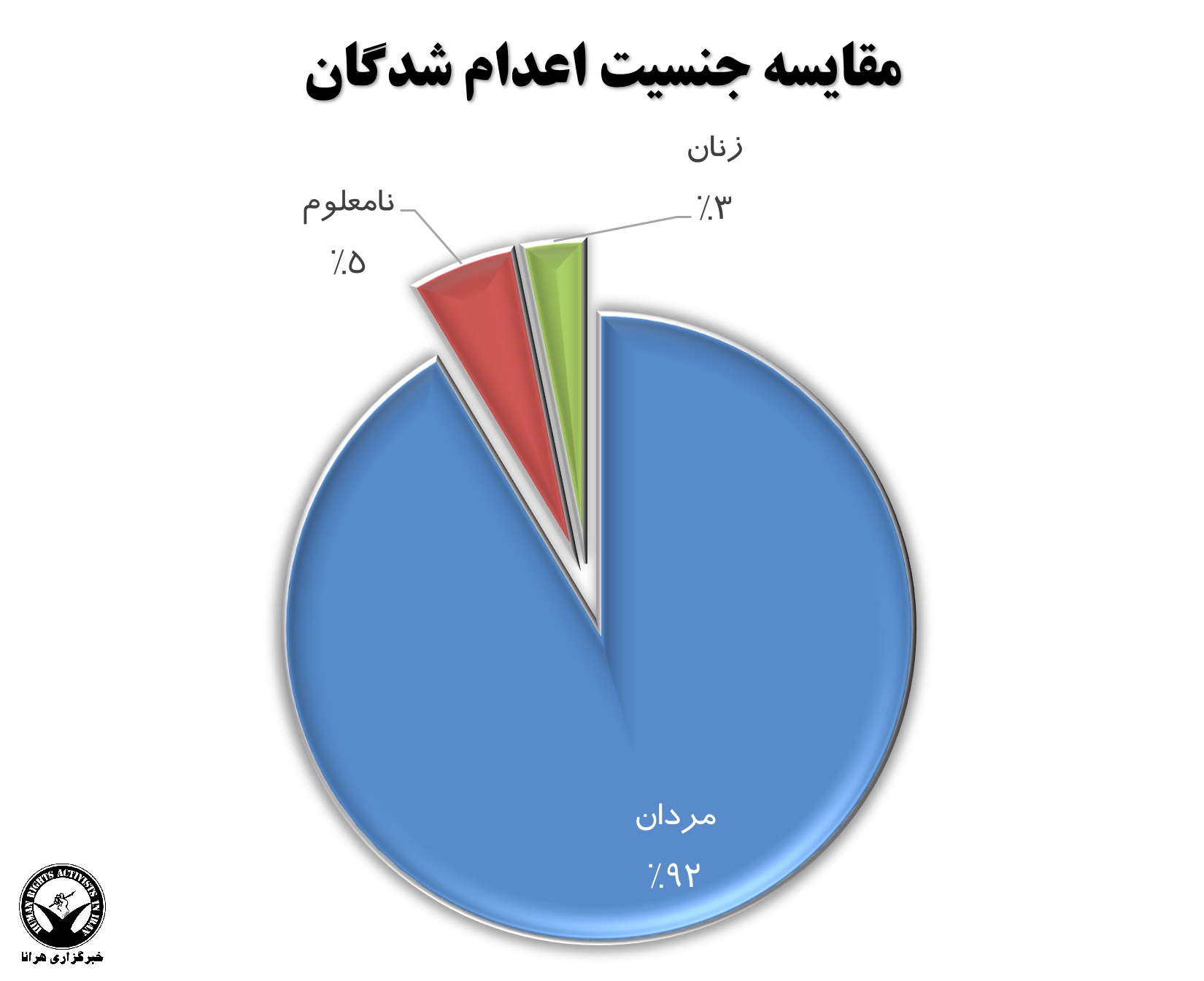 براساس آمارهای موجود ۳٪ از اعدام شدگان زن و ۹۲٪ اعدام شدگان مرد بوده اند.